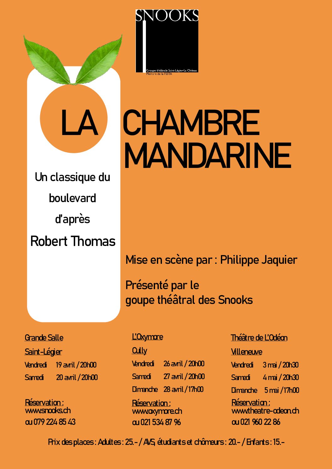 L’Agneau et la Tigresse (1), Une bécasse à plumer (2), Un serpent littéraire (3), Drôle d’oiseau anglais ! (4) et Le mandarin et la soubrette (5) sont les cinq sketches tirés de La Chambre mandarine que Les Snooks ont choisi de jouer au printemps 2024.